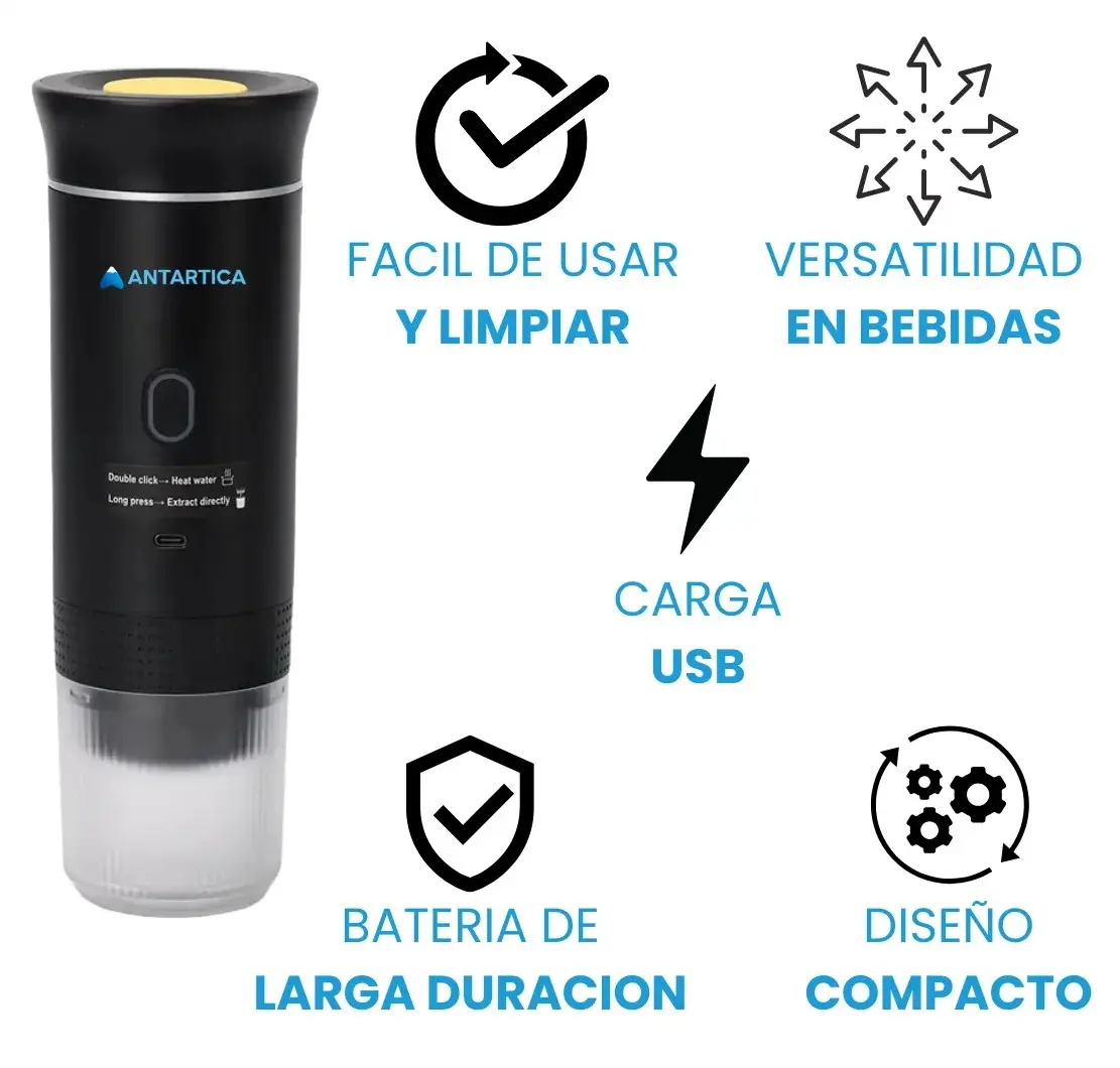 La cafetera portátil recargable es perfecta para disfrutar un café recién hecho en cualquier momento y lugar. Ideal para usar en el auto, la oficina, el hogar o al aire libre, esta máquina compacta ofrece comodidad, versatilidad y calidad profesional en cada taza.