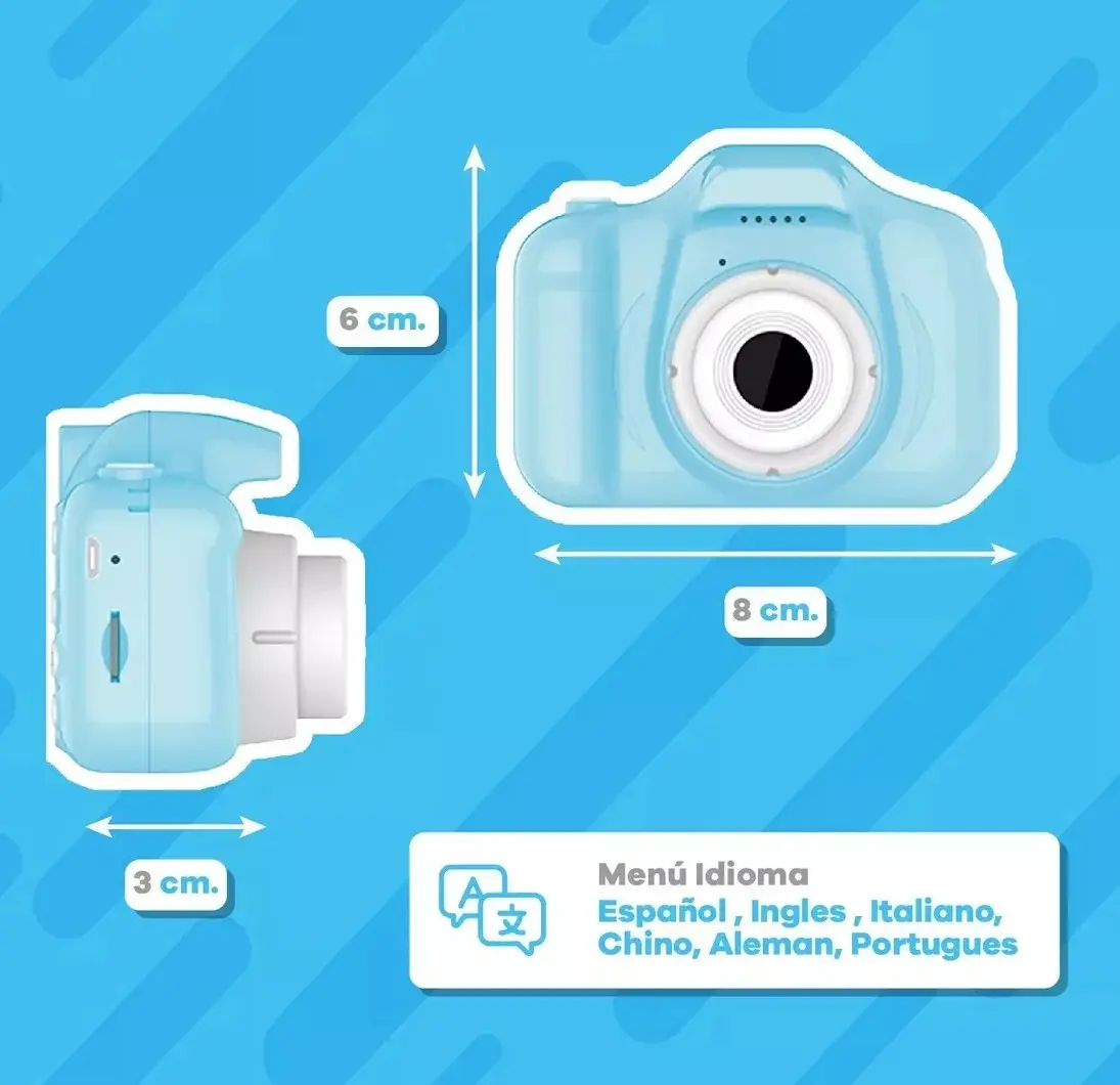 ✨ Su aspecto colorido y amigable despierta la creatividad de los niños, permitiéndoles tomar fotos, grabar videos y guardar recuerdos únicos mientras se divierten jugando a ser fotógrafos.