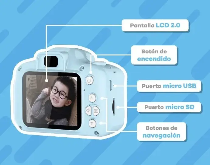 La Cámara para Niños es el regalo ideal para que los más pequeños capturen sus momentos favoritos de una manera divertida y segura. Con un diseño compacto, ligero y resistente, está pensada especialmente para manos pequeñas.