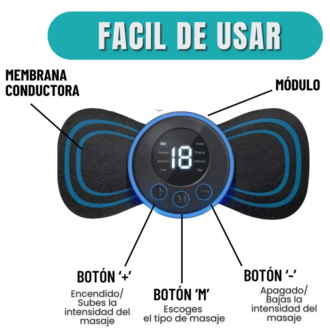El masajeador eléctrico con tecnología EMS (Electroestimulación Muscular) está diseñado para aliviar dolores crónicos, mejorar la circulación y acelerar la recuperación muscular tras actividades físicas intensas. Sus impulsos de estimulación actúan directamente sobre los músculos, brindando una sensación profunda de relajación, bienestar y firmeza.