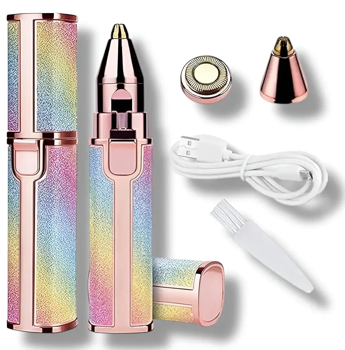 1. Diseñado con cabezal reemplazable, equipado con 2 cabezales. Uno para recortar las cejas refinadas y el otro para recortar el vello en áreas más grandes.